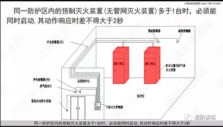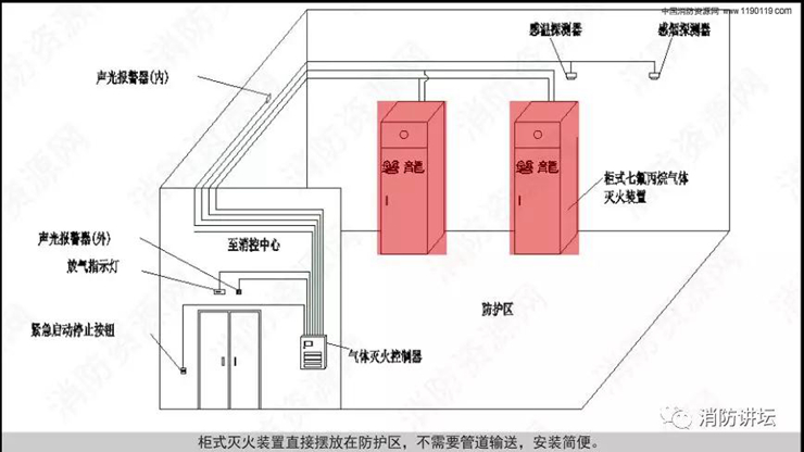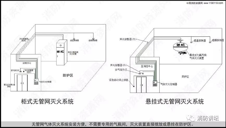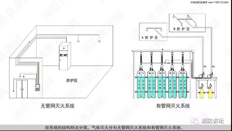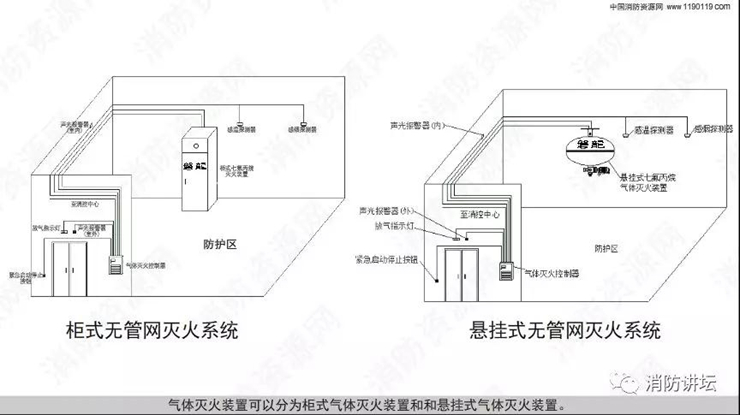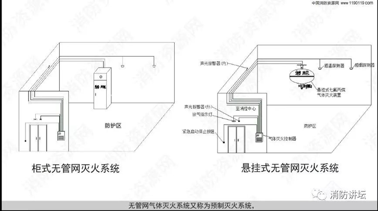 氣體滅火分為有管網(wǎng)滅火系統(tǒng)和無(wú)管網(wǎng)滅火系統(tǒng)! 無(wú)管網(wǎng)滅火系統(tǒng)又稱(chēng)為預(yù)制滅火系統(tǒng),分為懸掛式、柜式滅火系統(tǒng),概念糾結(jié),這里一次性講清楚了