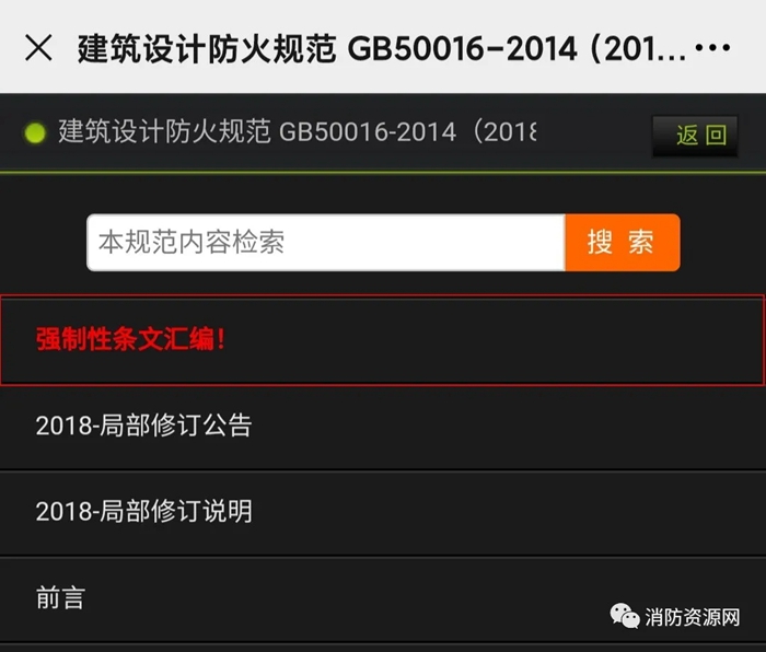 《消防資源網(wǎng)》重大升級! 新增強(qiáng)制性條文匯編,以饗大眾! 1. 規(guī)范的目錄首頁,新增強(qiáng)制性條文匯編: 2. 新增強(qiáng)條匯編、部局文件、地方標(biāo)準(zhǔn)、行業(yè)標(biāo)準(zhǔn)、答疑匯編等多個(gè)板塊: 了解更多功能↓↓↓ 一、..