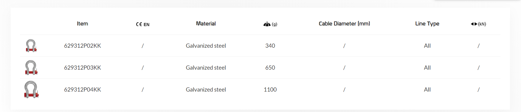 帶螺栓的高強(qiáng)度心形卸扣,有 3 種尺寸可供選擇。