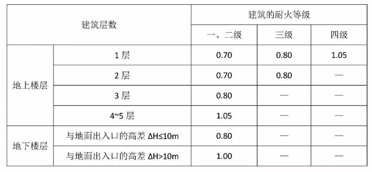 示例,建筑高度為四層的一級耐火等級建筑,按《中小學校設計規(guī)范》8.2.3要求,每100人所需的最小疏散凈寬度,地上一、二層的為0.7m、地上三層為0.8m、地上四層為1.05m;按《建筑設計防火規(guī)范》5.5.21要求,以總層數(shù)為單位,一至四層均為1.0m;